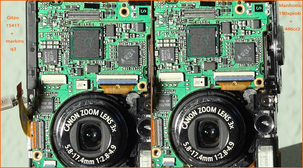 Верхний снимок делался на Кэнон 5д Мк2 + 135/2 L с опорных комплектов Manfrotto 190xprob + 486cr2 и Gitzo 1541T + markins q3. Этот тест проводил фотограф Emil Salman.